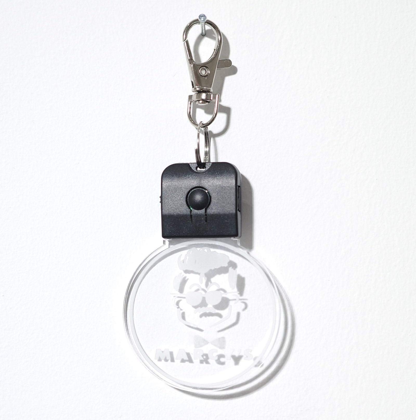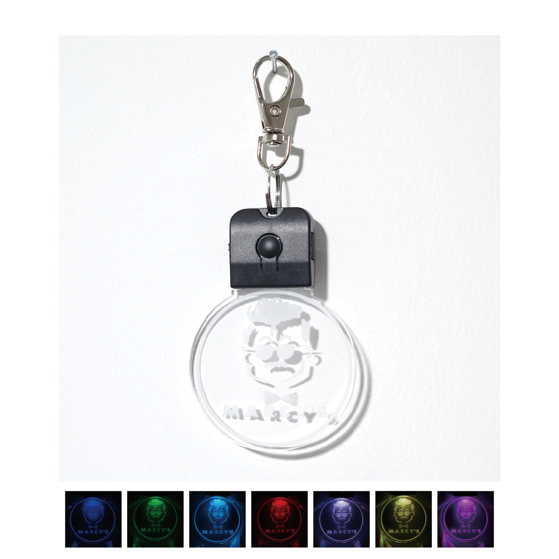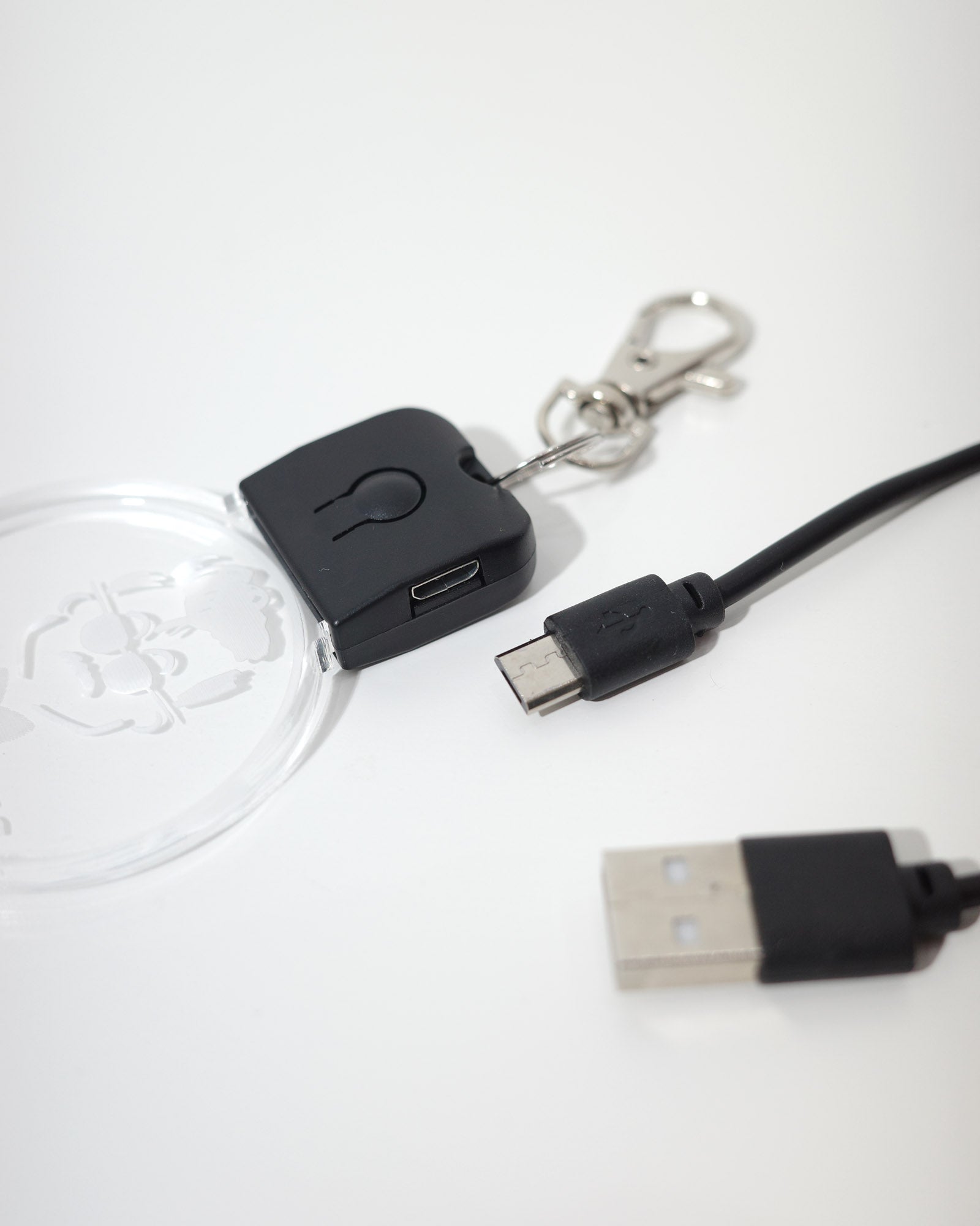 ボタン操作で7色に光るアクリルキーホルダーになります。